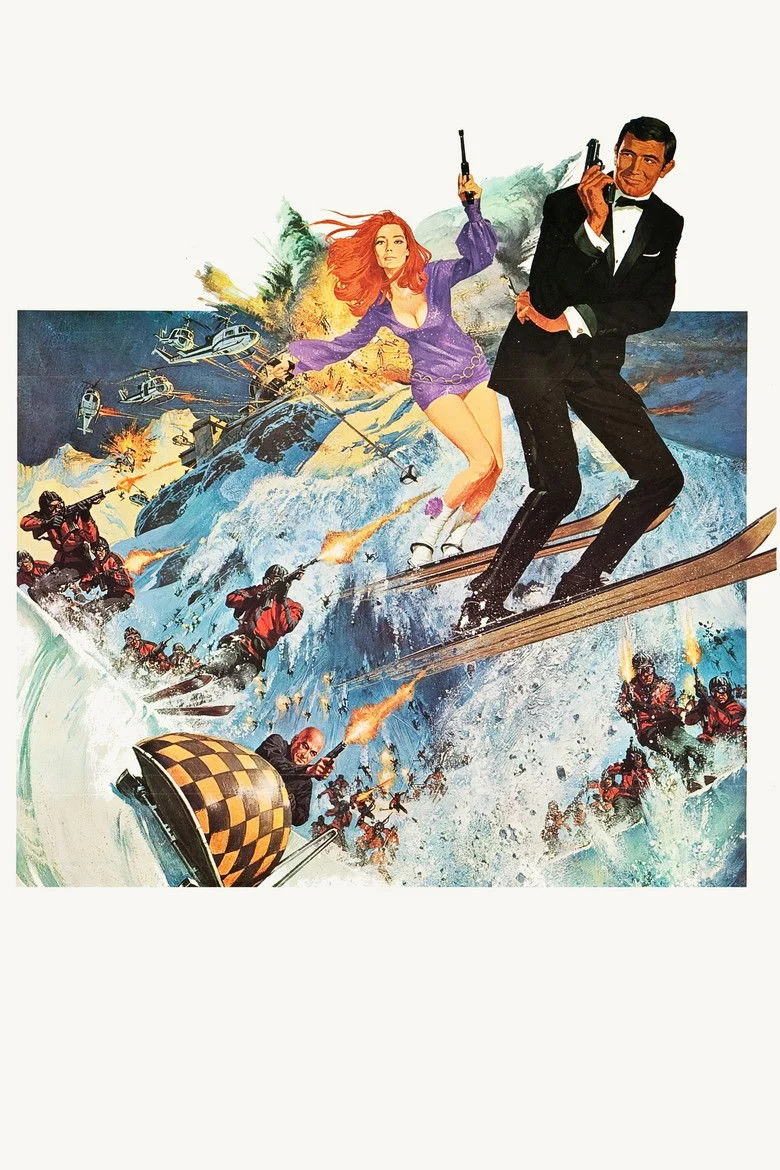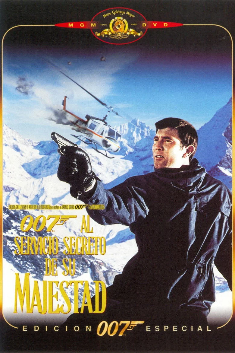 Sinopsis: Tras la marcha temporal de Connery, el actor australiano George Lazenby toma el relevo en esta nueva aventura del agente británico 007, que en esta ocasión se asocia a un mafioso -con cuya sensual hija Tracy Di Vicenzo (Diana Rigg) se llega a casar-, para unir sus fuerzas en la lucha contra la malvada organización Spectra. Ambientada en los alpes suizos, el malvado Stavro Blofeld -Savalas- amenaza al mundo entero con un malvado plan: desarrollar y lanzar una peligrosa bacteria que podría acabar con millones de personal en todo el planeta. La ausencia del actor escocés y el poco carisma de Lazenby hicieron de esta entrega uno de sus mayores fracasos comerciales, pero en años posteriores no han faltado los defensores que la reivindican como una de las más interesantes de toda la saga.