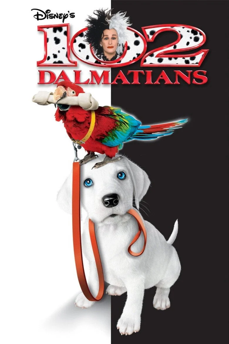 Sinopsis: Tres años después de que Cruella De Vil fue arrestada, ella sale muy mejorada gracias a un tratamiento de choque mediante relojes y campanadas. Le conceden la libertad condicional, pero su agente, Chloe Simmons, no está muy segura de las acciones de Cruella. Mientras, Cruella, paga con su dinero la cuantiosa suma que necesita una perrera dirigida por Kevin Sheperd. En una visita a su agente Cruella oye las campanas del Big Ben de Londres, lo cual, desestabiliza su mente y con la ayuda de Alonzo, su mayordomo, saca sus pieles del olvido y también su interés por los perros dálmata. Se alía con el peletero francés Jean-Pierre Le Pelt, para crear un abrigo de dálmata perfecto y viajan a Francia para ello. Pero en Francia y con la ayuda de Alonzo, Chloe y Kevin, la policía captura a los diseñadores y vuelven a la cárcel y mientras tanto un perrito de los 102 se va por una aventura.