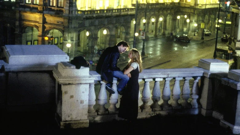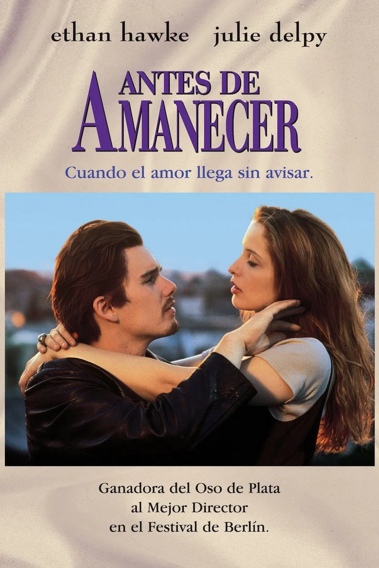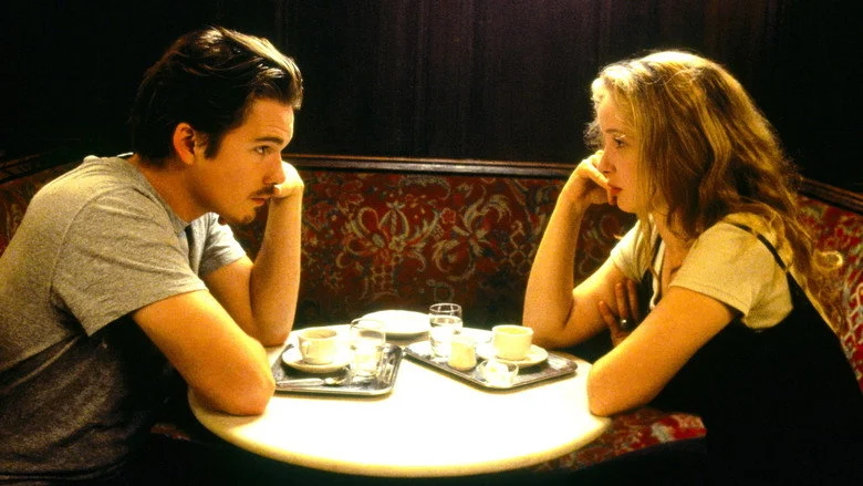Sinopsis: Céline (Julie Delpy) es una estudiante francesa que va a visitar a su abuela en Budapest. Jesse (Ethan Hawke) es un joven estadounidense que realiza un viaje a través de Europa luego de ser abandonado por su novia a quien realmente fue a visitar a España. Ambos se encuentran en un tren, en el trayecto entre Budapest y Viena. Llegados a Viena, Jesse debe descender, sin embargo, logra convencer a Céline para que pase una noche con él en la capital austríaca. En el curso de esa noche, se conocen a fondo, discuten y revelan cuestiones diversas como la vida, la muerte, el sexo.