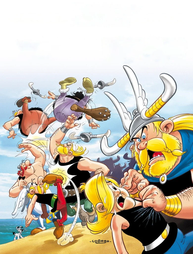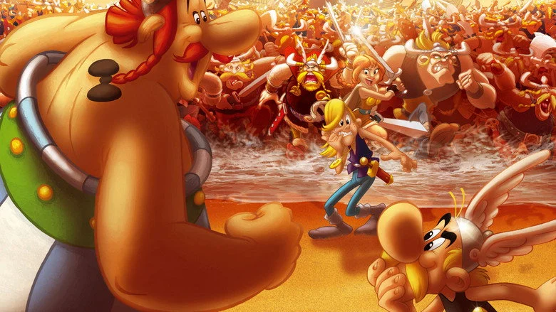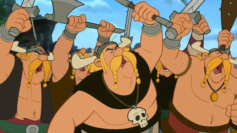 Sinopsis: La pequeña aldea gala va a recibir a Gudúrix, el sobrino del jefe, que ha encomendado a Astérix y Obélix la misión de convertirlo en un hombre hecho y derecho. Pero, a pesar de sus aires de superioridad, este adolescente de Lutecia no es más que un cobarde redomado, y el entrenamiento de choque al que lo someterán no parece que vaya a cambiar mucho las cosas. Mientras, los vikingos desembarcan en la Galia dispuestos a encontrar a un «campeón del miedo» que, tal y como les ha prometido su mago, sea capaz de enseñarles a volar, ya que, según él, «el miedo da alas». Cuando los vikingos raptan a Gudúrix se desata la catástrofe. Astérix y Obélix deberán hacer lo imposible por encontrarlo. Mientras se lanzan hacia el Gran Norte en busca de su joven protegido, éste, que se ha visto implicado contra su voluntad en un infame complot, conoce a la bella e intrépida Abba y se da cuenta de que el amor puede tener el mismo efecto que un puñetazo. ¡Todo un choque de culturas!