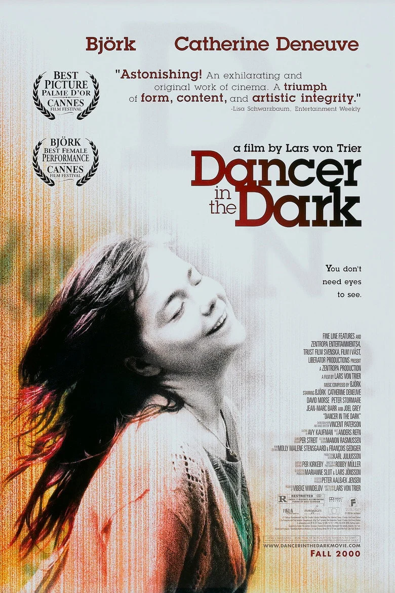 Sinopsis: La película se desarrolla en Estados Unidos en el año 1964. Selma (Björk) es una inmigrante checa que se muda a aquel país con su hijo Gene. Además padece una enfermedad hereditaria degenerativa que le está ocasionando una rápida ceguera progresiva. Por este motivo Selma ahorra centavo a centavo en una lata que guarda en su cocina para pagar una operación que evite que su hijo sufra el mismo destino.