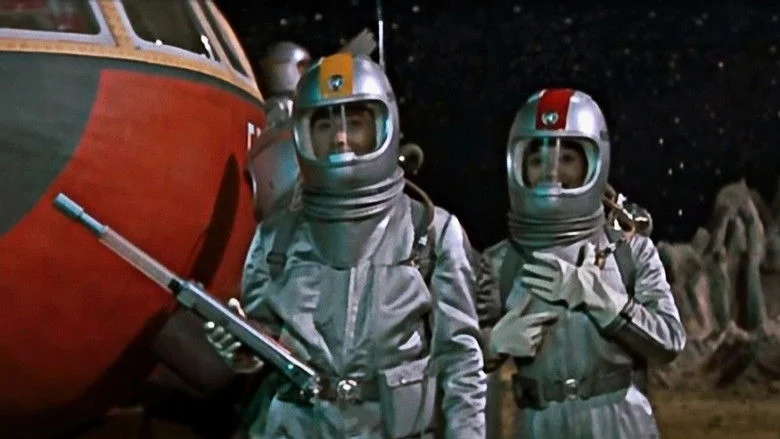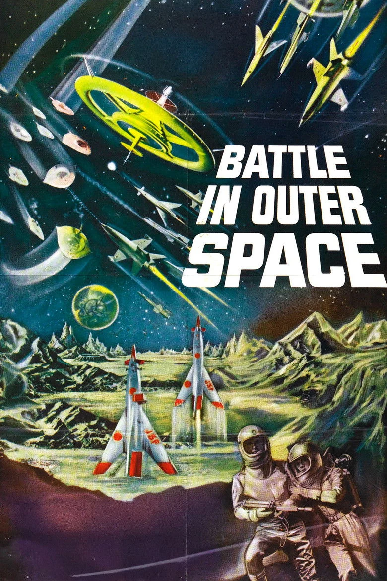 Sinopsis: En 1965, la estación espacial JSS-3 es destruida por una flota de ovnis, que luego comienzan un asedio global en la Tierra, utilizando rayos para manipular la gravedad y controlar las mentes de los hombres. En respuesta, se lleva a cabo una reunión del consejo global para determinar el origen de los ataques y preparar una armada de cohetes para un contraataque, una verdadera batalla en el espacio exterior. . . La película es una especie de secuela de THE MYSTERIANS de Toho en la repetición del personaje de Etsuko Shiraishi de esa película como su heroína. Fue editado a 74 minutos para su lanzamiento en Estados Unidos.