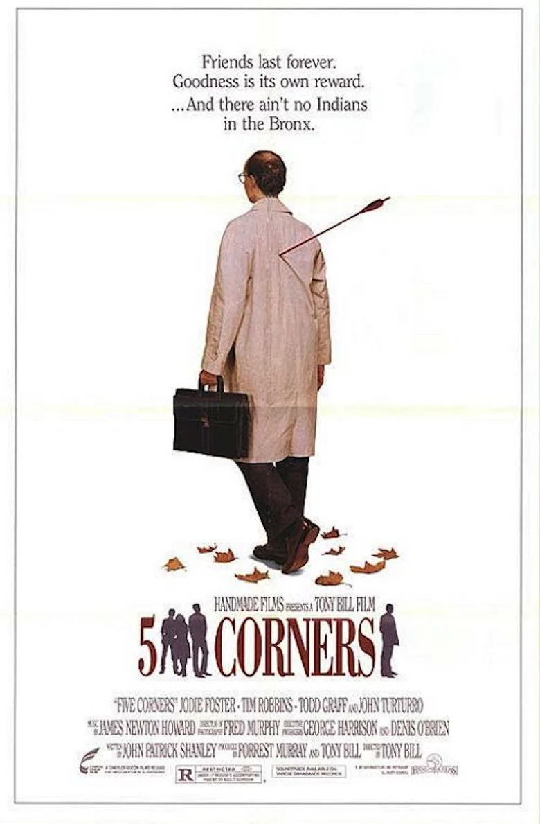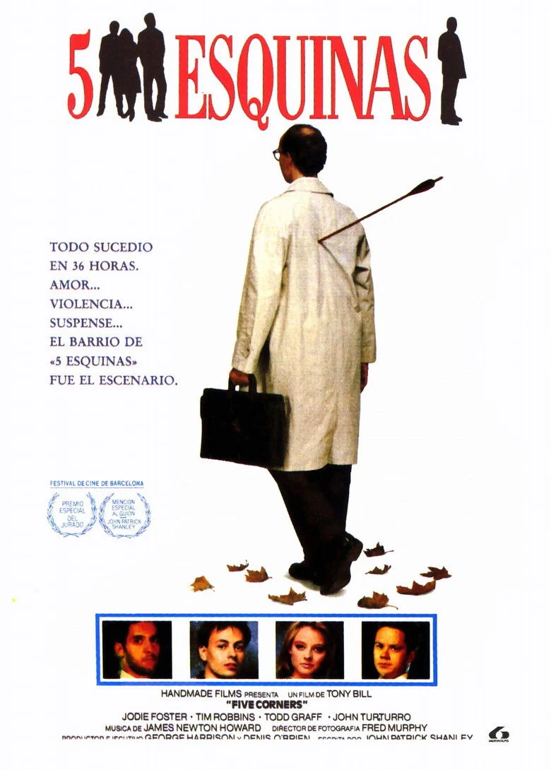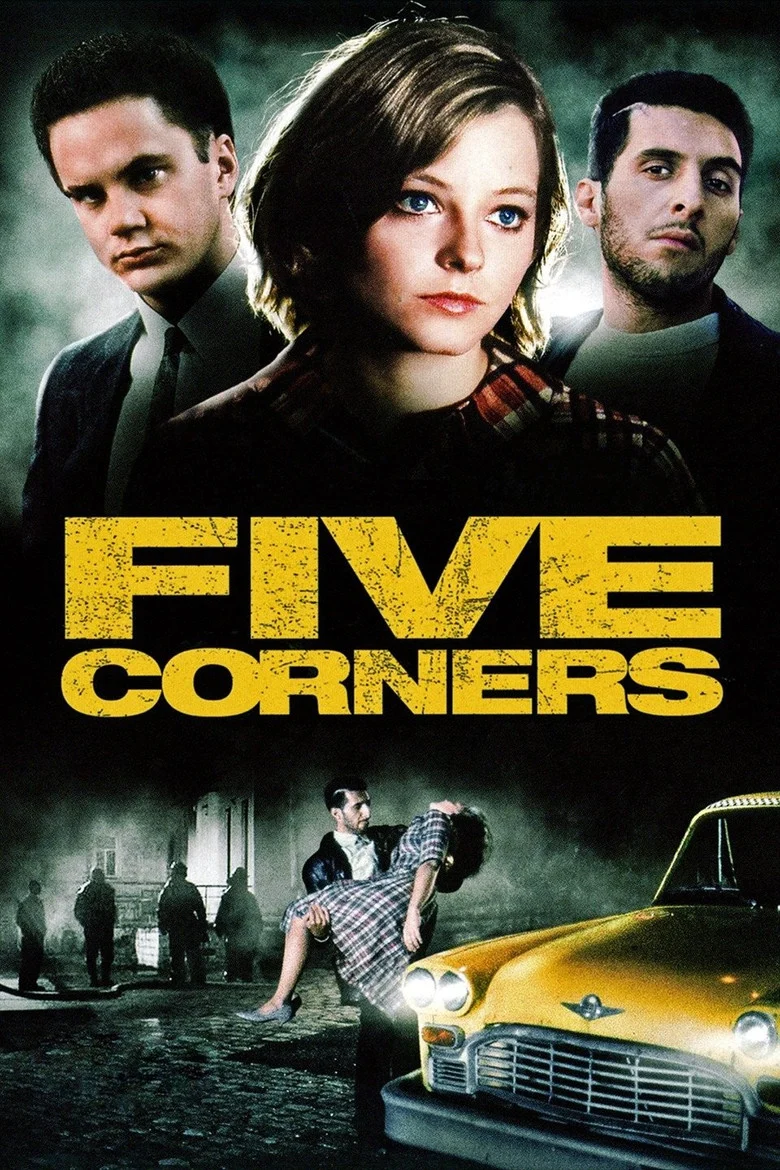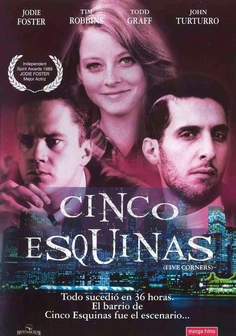 Sinopsis: Cinco esquinas es un barrio habitado por una clase media-baja en un momento en que los tiempos están cambiando, no sólo para los habitantes de la ciudad, sino para toda la población de los Estados Unidos. En dicho barrio, una mujer luchará por su vida cuando el hombre que la violó sale de la cárcel.