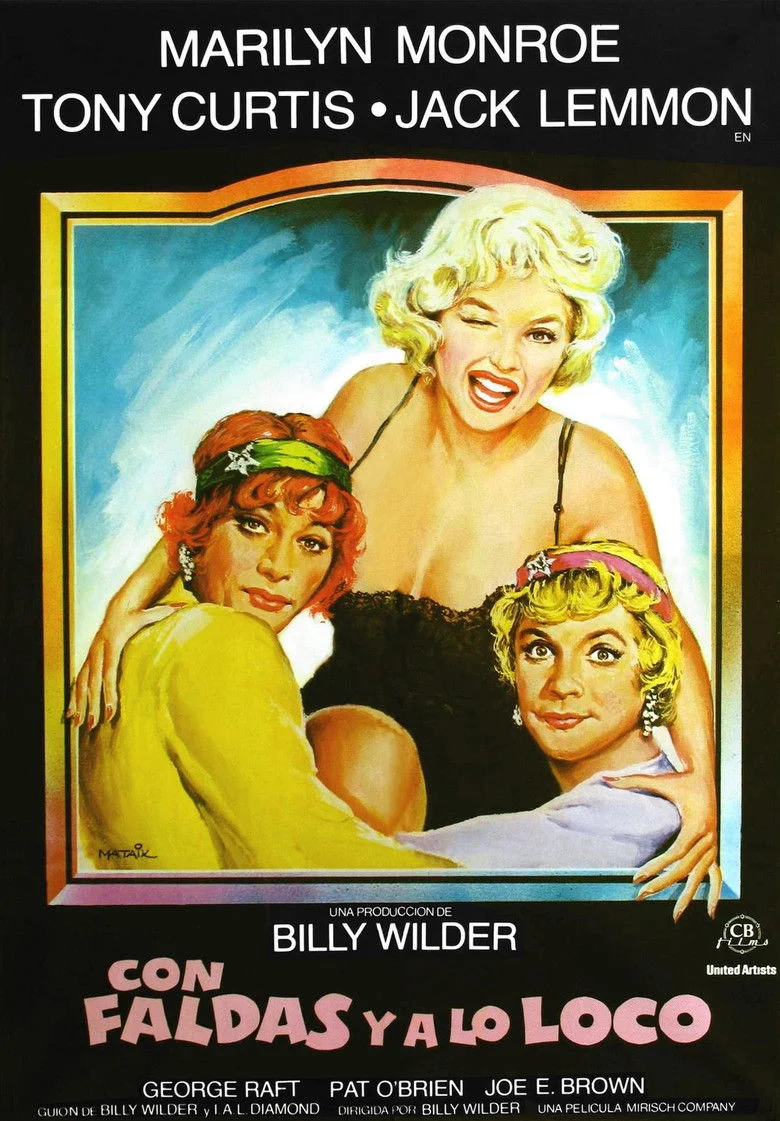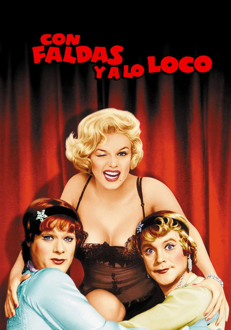 Sinopsis: Época de la Ley Seca (1920-1933). Joe y Jerry son dos músicos del montón que se ven obligados a huir después de ser testigos de un ajuste de cuentas entre dos bandas rivales. Como no encuentran trabajo y la mafia los persigue, deciden vestirse de mujeres y tocar en una orquesta femenina. Joe (Curtis) para conquistar a Sugar Kane (Monroe), la cantante del grupo, finge ser un magnate impotente; mientras tanto, Jerry (Lemmon) es cortejado por un millonario que quiere casarse con él.