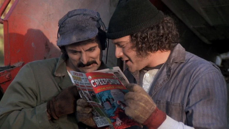 Sinopsis: Durante la festividad de Halloween, un insensible padre arroja a la basura un cómic con cinco historias de terror que tenía su hijo:- «Father's Day»: Una pequeña familia se reúne durante el aniversario de la muerte del odioso padre de la matriarca. - «The Lonesome Death of Jordy Verrill»: Un solitario campesino sufre las consecuencias de tratar imprudentemente un meteorito recién caído. - «Something to Tide You Over»: Un millonario se venga de su esposa y el amante de ésta sometiéndolos a una prueba mortal en su playa privada. - «The Crate»: El conserje de una universidad curiosea junto a un profesor una caja que parece llevar décadas olvidada bajo unas escaleras. - «They're Creeping Up on You»: Un magnate egoísta en su apartamento tiene con las cucarachas un problema más grande de lo que pensaba.