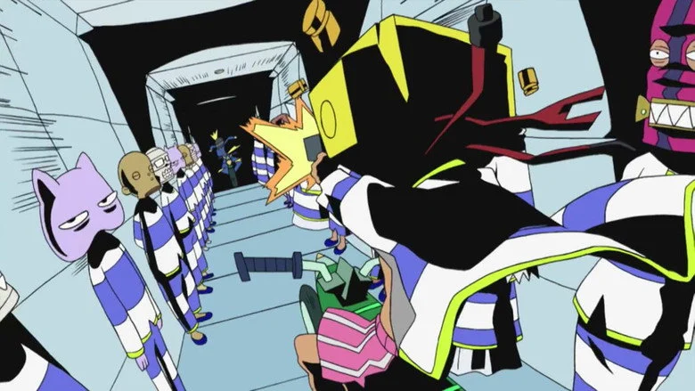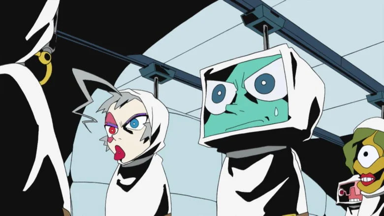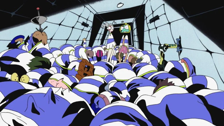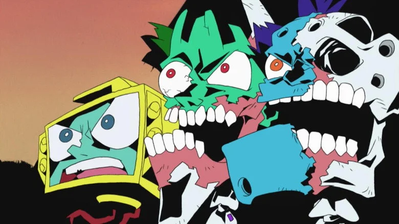 Sinopsis: Planeta Tierra: el futuro. Los únicos humanos que quedan son clones. Retro, un joven que, por alguna razón, tiene un televisor en lugar de cabeza y Pandy, una chica con una mancha de nacimiento sobre su ojo derecho, escapan de la policía. Capturados por las fuerzas del orden, son encarcelados en la colonia penitenciaria lunar llamada "Dead Leaves". Pronto se dan cuenta de que no están como para aguantar el régimen brutal de la prisión, así que comienzan a planear su huida, comenzando así una aventura violenta, caótica, esperpéntica y rocambolesca.