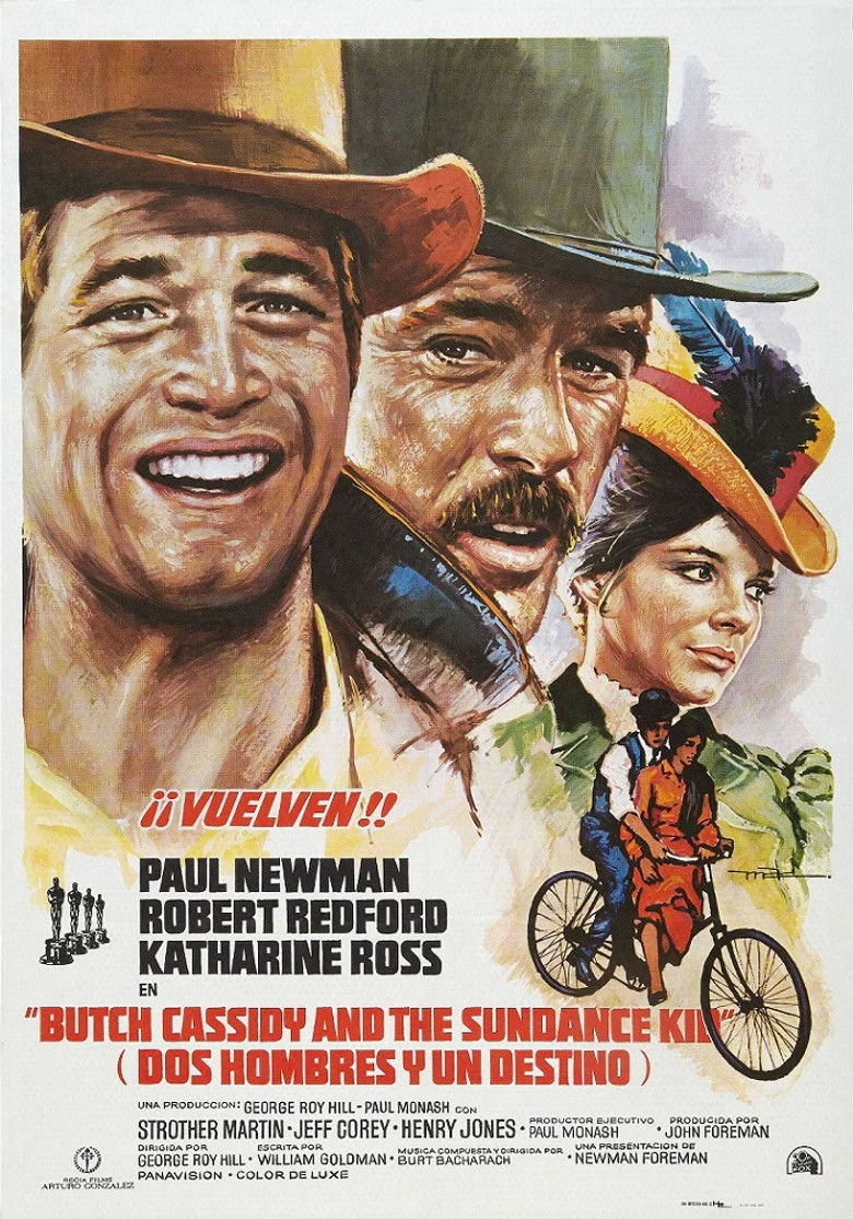 Sinopsis: Un grupo de jóvenes pistoleros se dedica a asaltar los bancos del estado de Wyoming y el tren-correo de la Union Pacific. El jefe de la banda es el carismático Butch Cassidy (Newman), y Sundance Kid (Redford) es su inseparable compañero. Un día, después de un atraco, el grupo se disuelve. Será entonces cuando Butch, Sundance y una joven maestra de Denver (Ross) formen un trío de románticos forajidos que, huyendo de la ley, llegan hasta Bolivia.