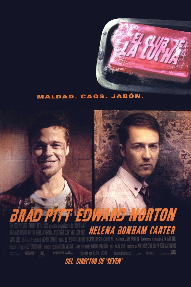 Sinopsis: Un joven sin ilusiones lucha contra su insomnio, consecuencia quizás de su hastío por su gris y rutinaria vida. En un viaje en avión conoce a Tyler Durden, un carismático vendedor de jabón que sostiene una filosofía muy particular: el perfeccionismo es cosa de gentes débiles; en cambio, la autodestrucción es lo único que hace que realmente la vida merezca la pena. Ambos deciden entonces formar un club secreto de lucha donde descargar sus frustraciones y su ira que tendrá un éxito arrollador.