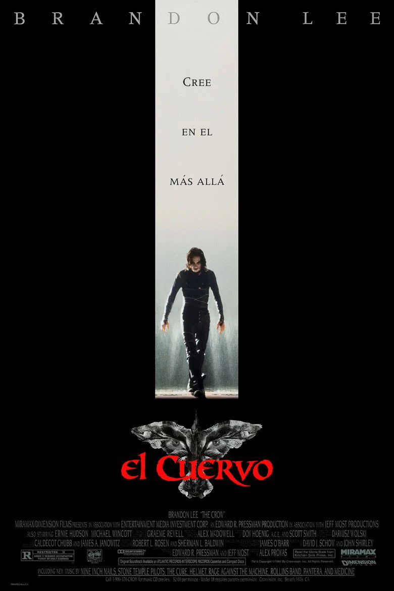 Sinopsis: Eric Draven y Shelly Websyter están a punto de casarse, pero la noche antes del enlace son asesinados brutalmente. Un año después, el alma de Eric vuelve a la Tierra en forma de cuervo para vengarse.