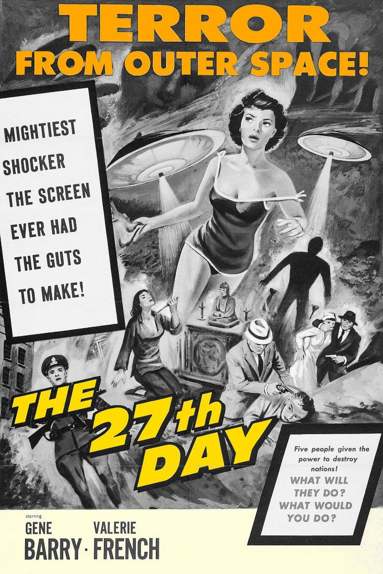 Sinopsis: Tres hombres y dos mujeres de distintos orígenes son llevados a un platillo volante donde un extraterrestre les explica que su pueblo vive en un planeta moribundo y necesita a la Tierra. Sin embargo, su código ético no les permite conquistarla. ¿La solución? Que sean los propios humanos quienes aceleren su propia destrucción. Para ello les da a cada uno tres cápsulas capaces de destruir la vida humana en un radio de 2.500 kilómetros. Los cinco elegidos disponen de 27 días para utilizarlas.
