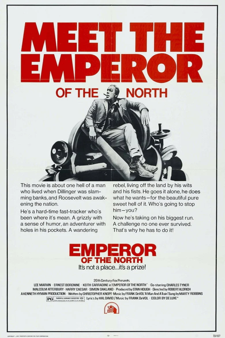 Sinopsis: Oregón, 1933. Entre los vagabundos sin trabajo que, durante la Gran Depresión, se desplazan de un estado a otro viajando clandestinamente en los trenes, el número uno es "El emperador del norte" (Marvin), llamado así por su astucia para burlar a los ferroviarios. Dos hombres aspiran a arrebatarle el título, pero para ello tendrán que llegar a Portland en el tren de Sack (Borgnine), un sádico e implacable maquinista. Inspirada en las aventuras de Jack London.