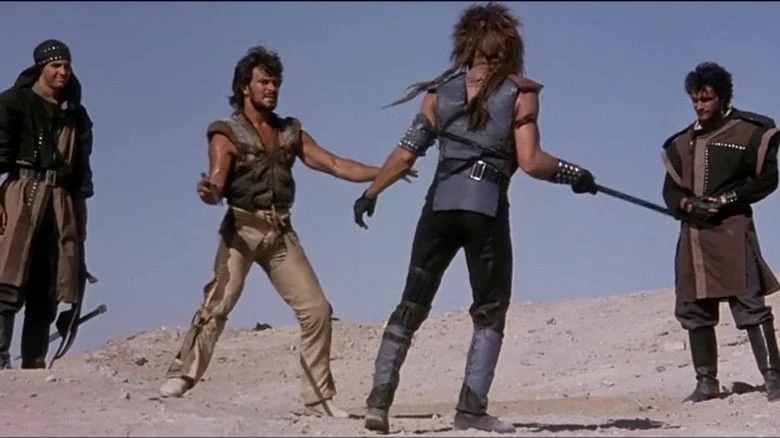 Sinopsis: En un futuro post-apocalíptico, un guerrero experto en artes marciales que vaga por el desierto ayudará a unos pacíficos colonos amenazados por una banda de asesinos que desean el control del agua.