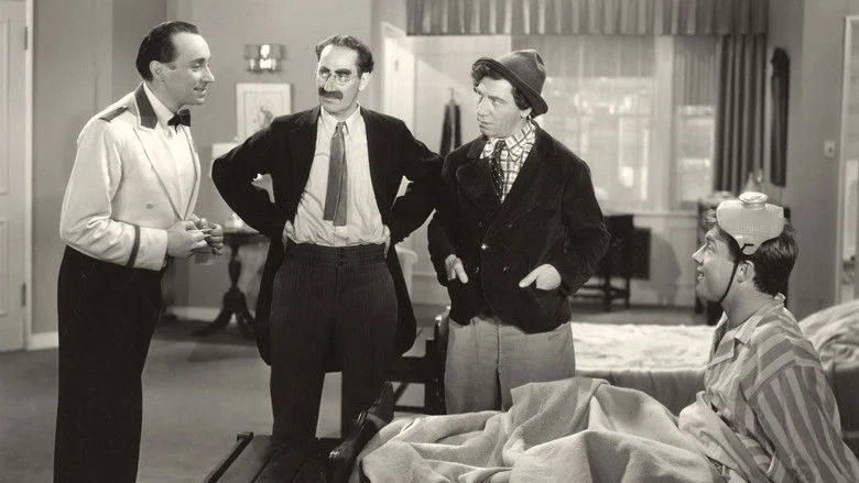 Sinopsis: Los Hermanos Marx tratar de estrenar una obra antes de que el dueño del hotel donde se alojan se entere de que se han quedado sin dinero. Para hacer tiempo, simulan que el autor de la obra ha contraído alguna enfermedad grave y no se puede mover.