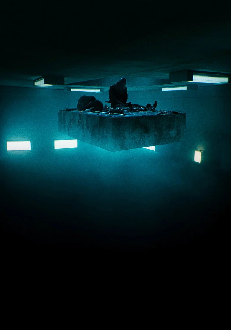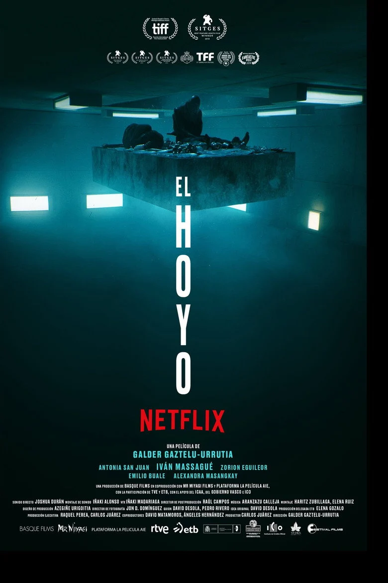 Sinopsis: A slab of food descends down a vertical facility. The residents above eat heartily, leaving those below starving and desperate. A rebellion is imminent.