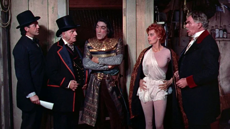 Sinopsis: En tiempos del Salvaje Oeste, Tom Healy (Anthony Quinn) ha creado una compañía teatral con la que pretende llevar cultura a un país signado por la violencia. Sostenerse con tales aspiraciones resulta bastante complicado, y su enamorada y estrella de la compañía, Angela Rossini (Sophia Loren), terminará apostando su propia honra con el afán de mantener su tarea en alto. Pero la suerte no está de su parte y el pistolero Mabry (Steve Forrest) va a seguirlos con la firme aspiración de que ella pague su deuda.
