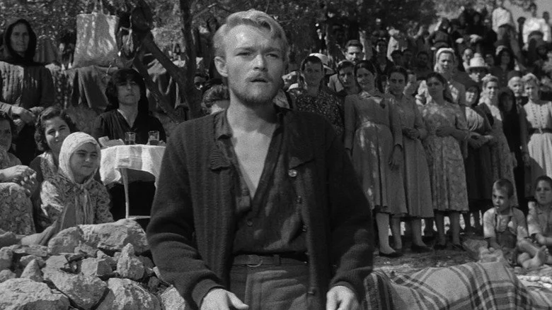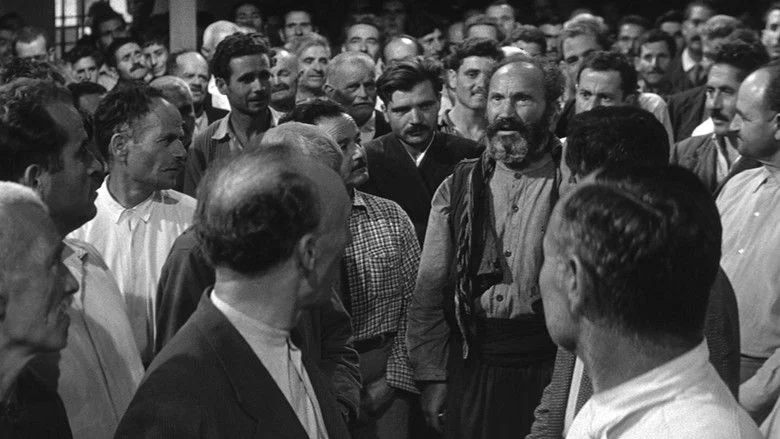Sinopsis: En los años 20, estando Grecia bajo la ocupación turca, los habitantes de un pequeño pueblo se preparan para la representación anual de La Pasión. La llegada de unos refugiados, provenientes de una aldea saqueada por los turcos, altera la armonía de la villa, pues los aldeanos, convencidos que si se muestran amables con esos refugiados perderán el favor de los invasores, deciden expulsarlos y no ayudarlos. Manolios, un pastor al cual le ha sido dado el papel de Jesucristo en la representación teatral, tratará de convencer a la gente del poblado para tener piedad de los refugiados.