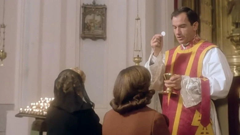 Sinopsis: El padre Miguel, un atractivo y tímido sacerdote de treinta y seis años, atraviesa una crisis de conciencia. Además, la continua presencia en su confesionario de Irene, una joven y bella mujer casada, a la vez piadosa y apasionada, va mermando su fe y sus convicciones religiosas.