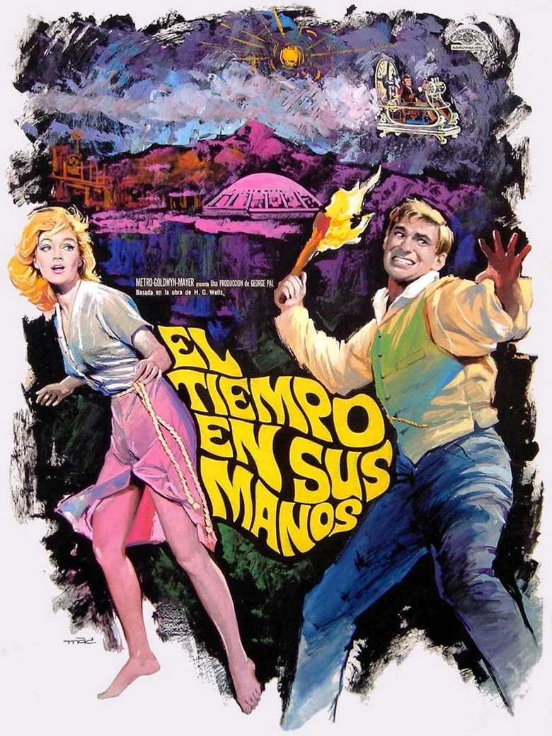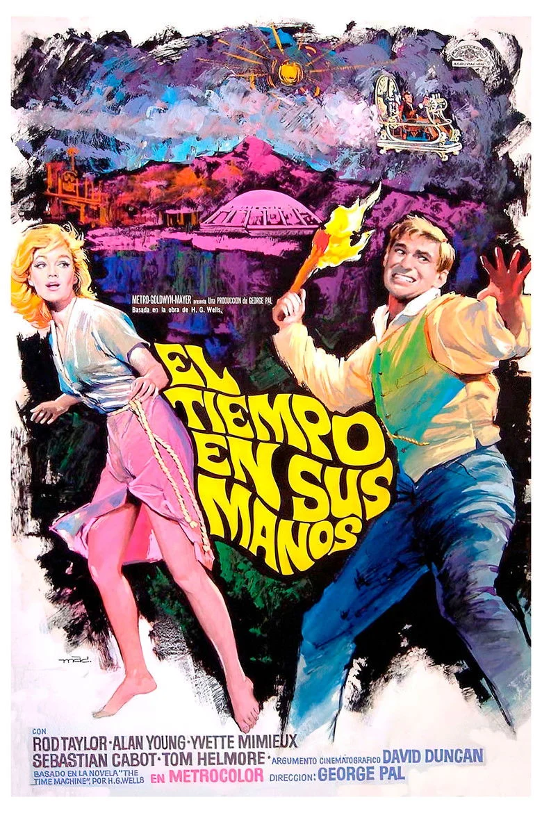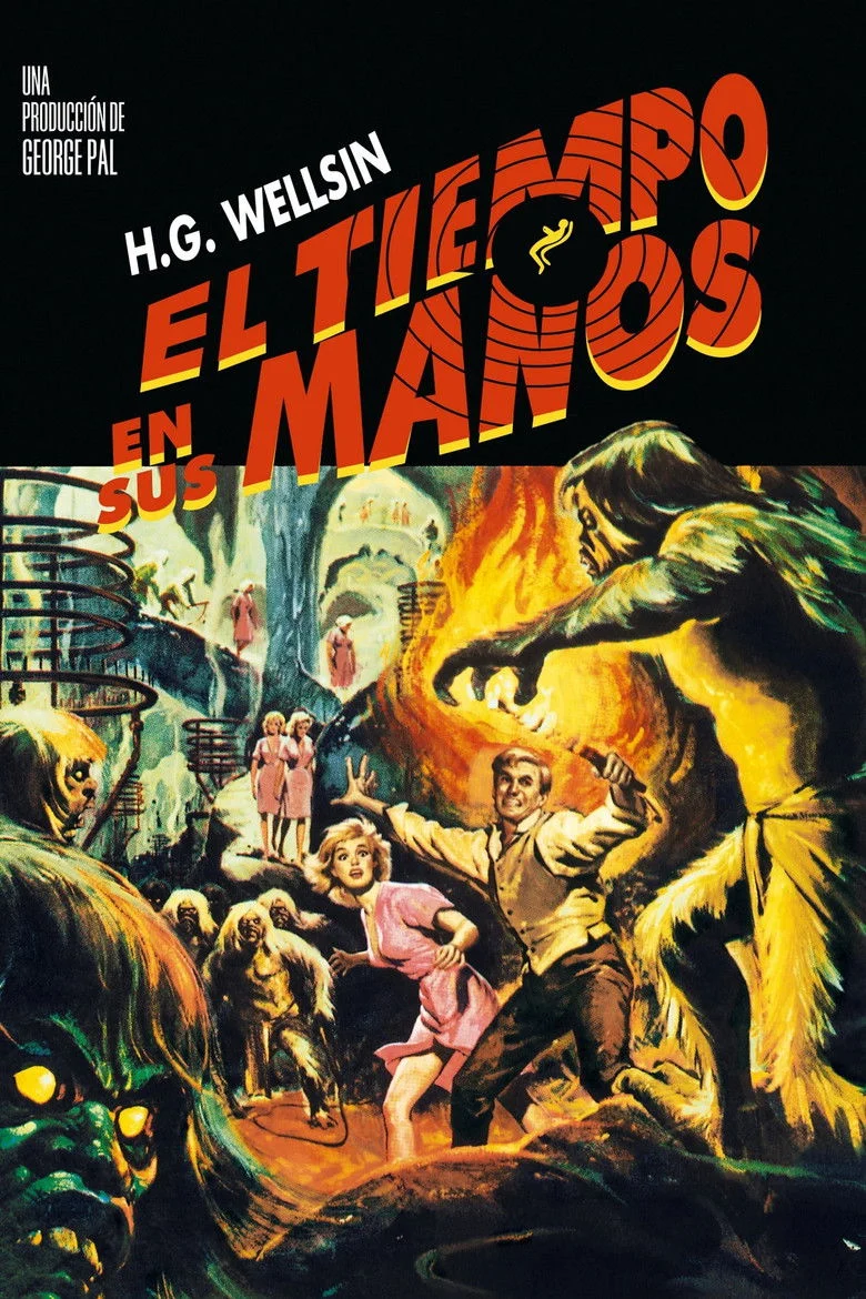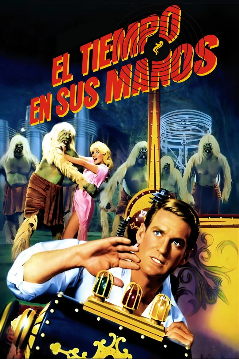 Sinopsis: El tiempo en sus manos cuenta como en 1899 un científico finaliza la construcción de un vehículo que le permite viajar a través del tiempo.Poco después, inicia un alucinante viaje a través de los siglos, y es testigo entre otros acontecimientos, de la Segunda Guerra Mundial y de un holocausto atómico en 1966, del que sale ileso.Su último destino es un paradisiaco lugar, localizado en una era muy posterior a la nuestra, concretamente en el año el año 802701, donde vivirá una increíble aventura.