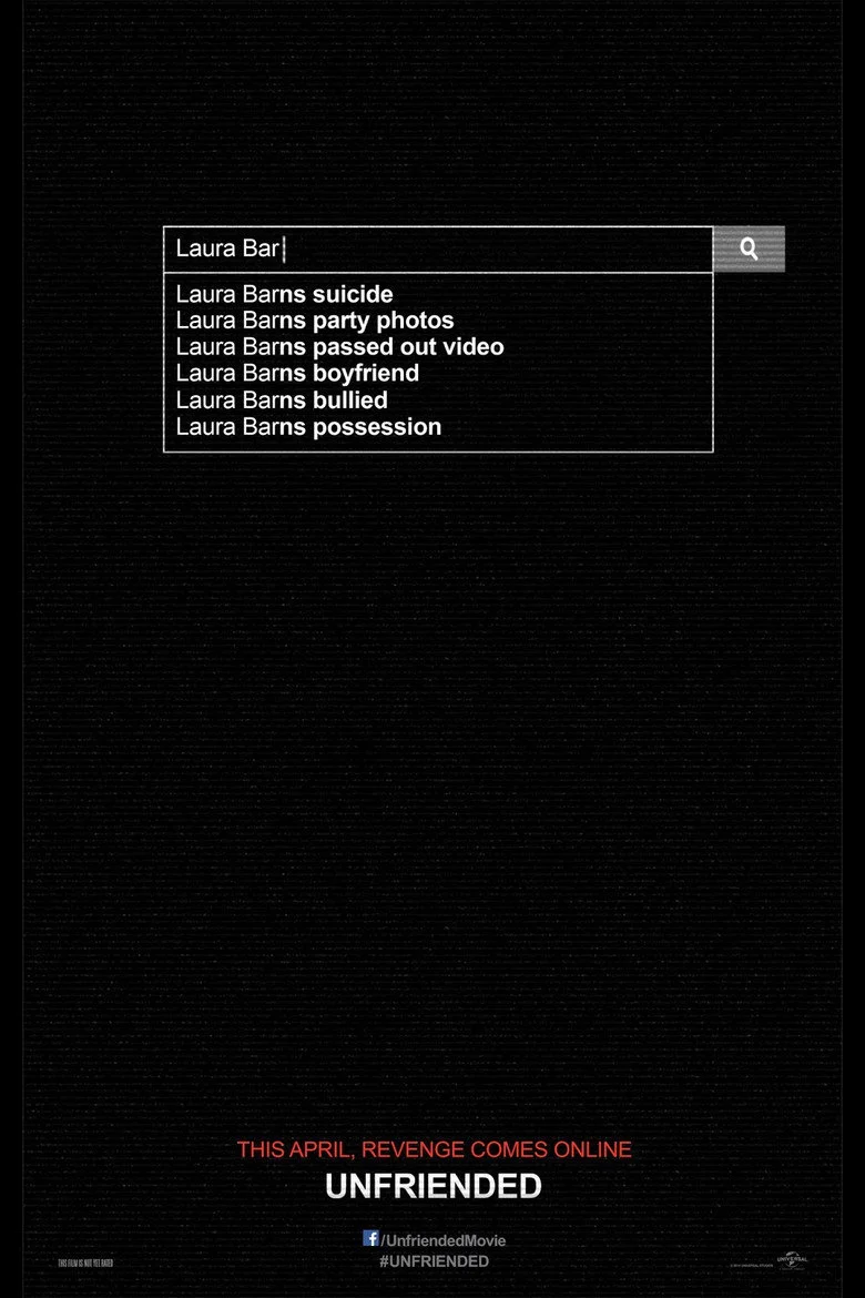 Sinopsis: Mientras están chateando una noche, seis amigos reciben por Skype un mensaje de Laura Barns, una joven estudiante que se había suicidado un año antes tras ser humillada en Internet por un video sexual en el que aparecía borracha una noche. Al principio los amigos piensan que es una broma, pero cuando la persona con la que chatean comienza a revelar sus secretos más íntimos, se dan cuenta de que el asunto es grave.