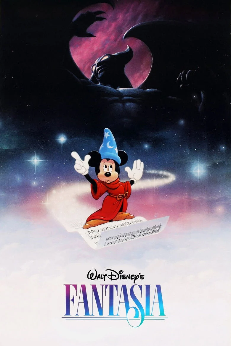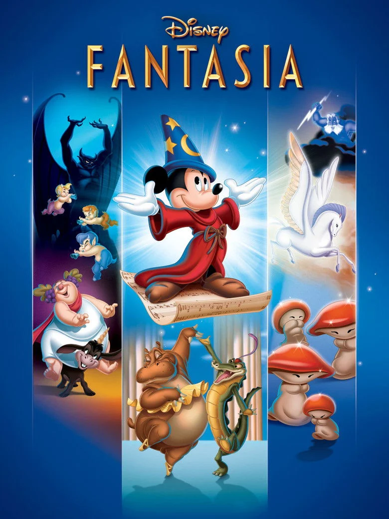 Sinopsis: Todo un clásico de la Disney, una colección de interpretaciones animadas de grandes obras de música clásica. En 'El Aprendiz de Brujo' (P. Dukas), Mickey Mouse, discípulo de un mago, se mete en un gran embrollo, pues sus conocimientos de magia son muy limitados. 'La Consagración de la Primavera' (Stravinsky) cuenta la historia de la evolución, desde los seres unicelulares hasta la extinción de los dinosaurios. 'La Danza de las Horas' (Ponchielli) es un fragmento de un ballet cómico interpretado por elefantes, hipopótamos, cocodrilos y avestruces. 'Una Noche en el Monte Pelado' de Mussorgsky y el 'Ave Maria' de Schubert describen el enfrentamiento entre la oscuridad y la luz.