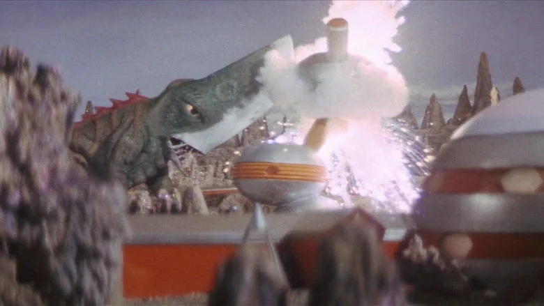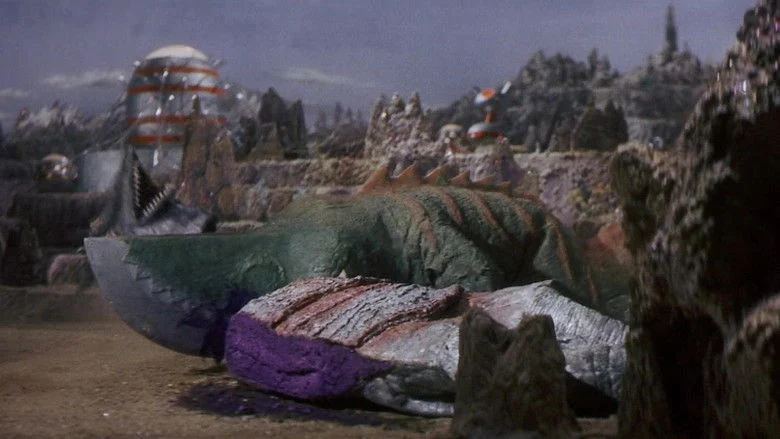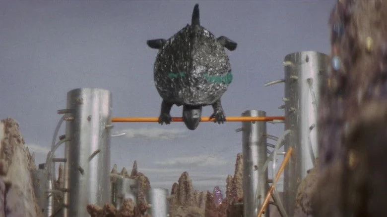 Sinopsis: Unos alienígenas raptan a dos niños y los llevan a su planeta para obtener conocimiento de sus cerebros, pero Gamera irá al rescate.