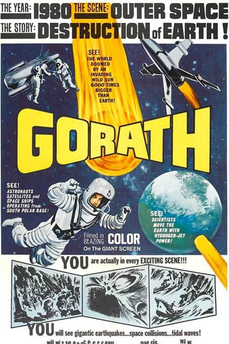 Sinopsis: Gorath es un meteoro errante (6000 veces más grande que nuestro planeta) que viaja inexorablemente en curso de colisión contra la Tierra, absorbiendo todo lo que se le envía. Los cientificos tendrán que evitarlo, pero la cosa es difícil ya que la solución propuesta para escapar niega todas las posibilidades de la física al apartar nuestro planeta del camino de Gorath. Tras una cumbre de científicos internacional se propone el lanzamiento de unos proyectiles desde el Polo Sur. Pero el calor provoca el derretimiento de un casquete y la liberación de Maguma, una monstruosa morsa gigante.