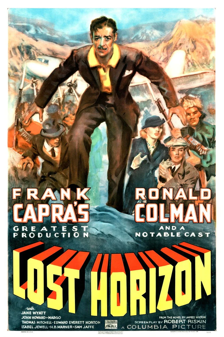 Sinopsis: Varios pasajeros, entre los que se encuentra un joven diplomático inglés, sobreviven a un accidente aéreo en el Himalaya. Cuando creen que la muerte es inevitable, son rescatados por los habitantes de Shangri-La, una idílica y utópica comunidad que vive oculta en el Tíbet. Mientras la II Guerra Mundial amenaza al mundo, ellos descubrirán un lugar donde la gente vive feliz y sin envejecer.