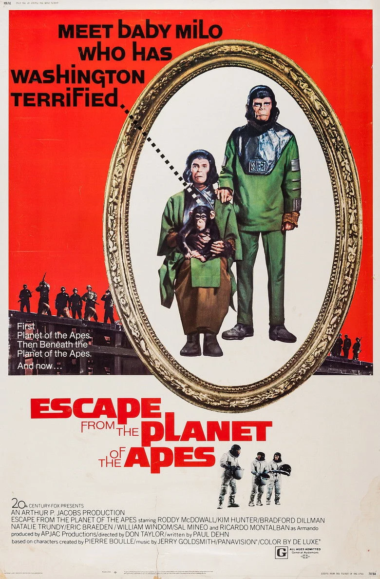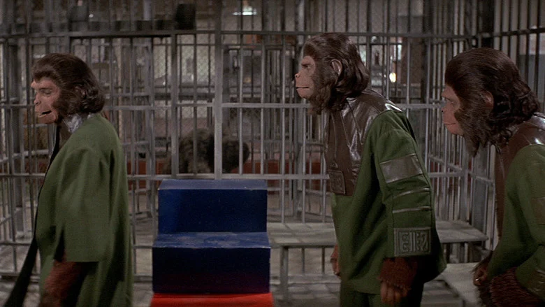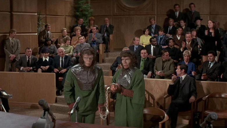 Sinopsis: Tres simios, la doctora Zira, Cornelius y el doctor Milo, han conseguido sobrevivir al desastre nuclear en su planeta y, tras arreglar la nave de los humanos, viajan en el tiempo hasta llegar a la Tierra de finales del siglo XX. Al llegar, mientras son estudiados en un centro de investigación para determinar su nivel de inteligencia, se niegan a revelar lo que saben sobre la civilización humana.