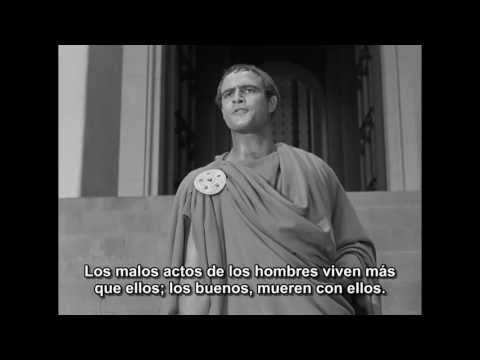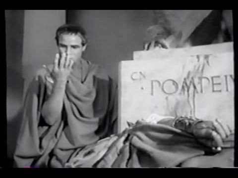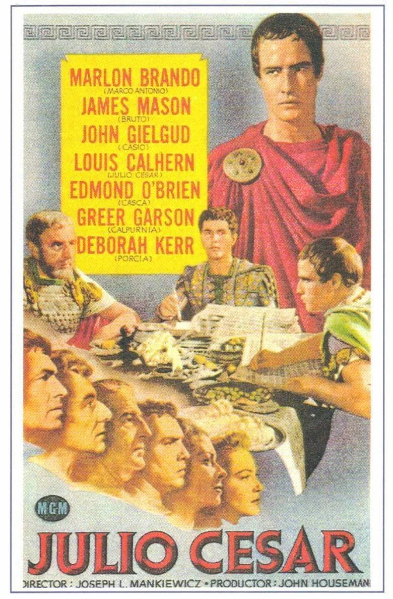 Sinopsis: Fiel adaptación para el cine de la obra homónima de Shakespeare. Terminada la guerra civil entre César y Pompeyo (49-46 a. C.), César se convierte en dictador vitalicio y concentra en su persona todos los poderes, lo cual implica, de hecho, la desaparición de la República. En el año 44 a. C., Casio y Bruto, dos nobles romanos defensores a ultranza de las libertades republicanas, encabezan una conjura contra el dictador, que es asesinado en los idus de marzo de ese mismo año. Cabría destacar el apologético (y demagógico) discurso que pronuncia Marco Antonio en defensa de César con el fin de soliviantar a la plebe contra los tiranicidas. Con esta obra Mankiewicz propone una lección política sobre los regímenes autoritarios.