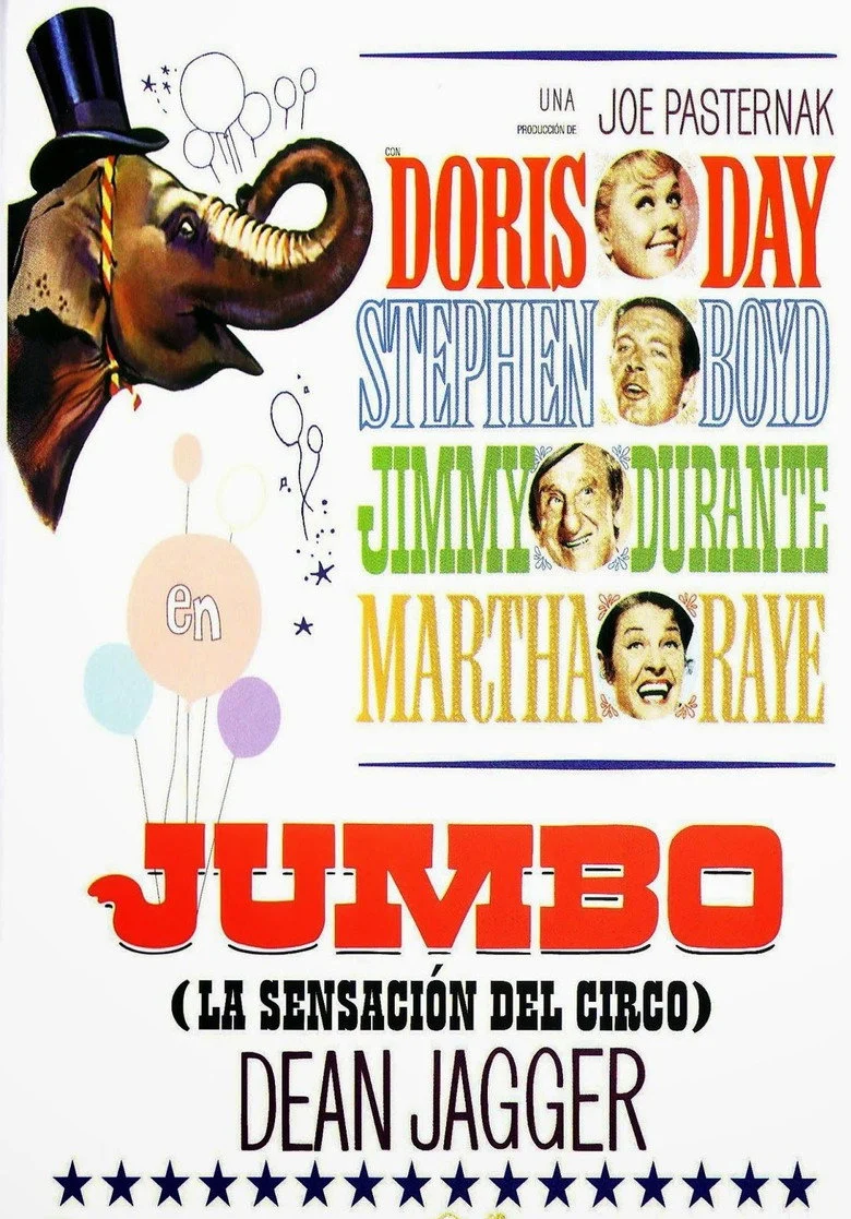 Sinopsis: Jimmy Durante es el propietario de un circo que cuenta solamente con dos atracciones de interés: su hija (Doris Day) y Jumbo, un elefante de gran talento. La chica y su padre tendrán que agudizar el ingenio para salvar el circo del acoso de los acreedores. (FILMAFFINITY)