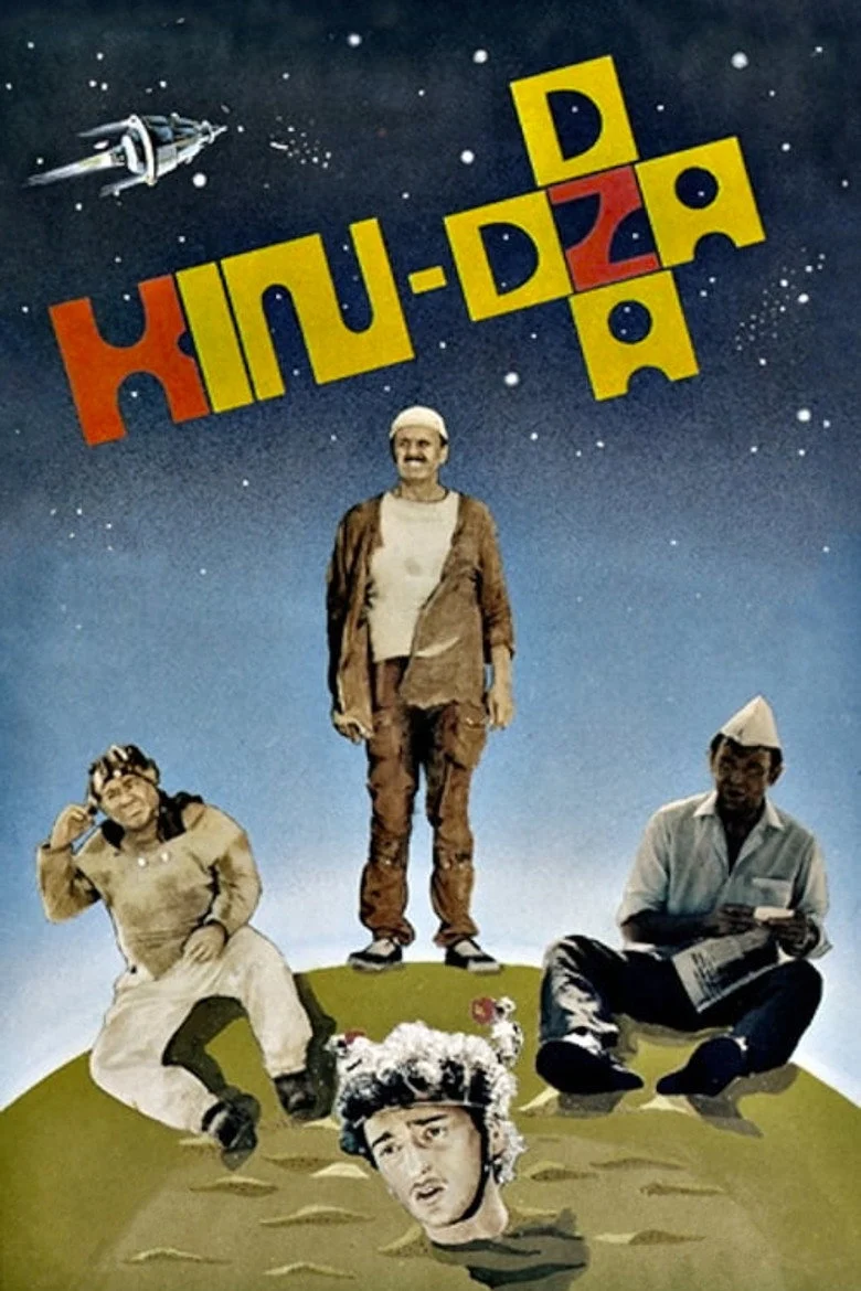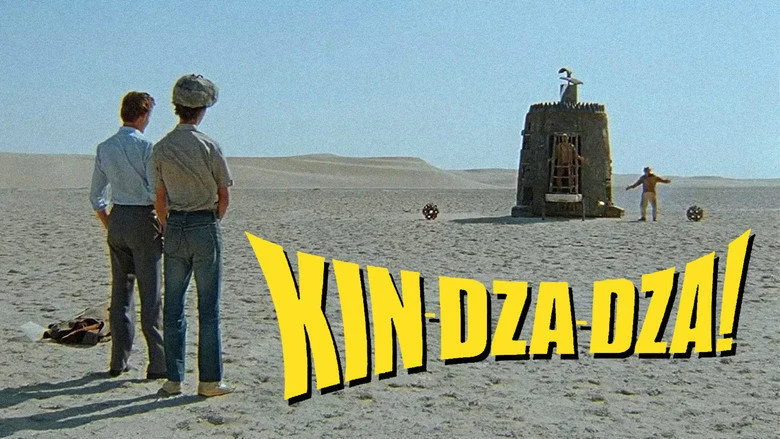 Sinopsis: Dos humanos son teletransportados por accidente, al apretar el botón que no debían, a un planeta llamado Plyuk en la galaxia de Kin Dza Dza. Los extraños habitantes de este lejano sitio son de apariencia humana y entienden el ruso, después de leer la mente a uno de los terrícolas. Su propia lengua se basa principalmente en la telepatía y sólo hablan 11 palabras. Son una civilización muy avanzada tecnológicamente, pero muy retrasada en el aspecto social.