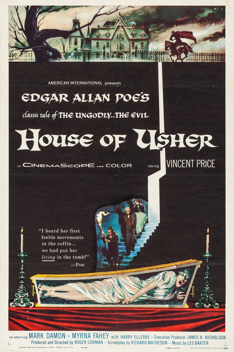 Sinopsis: Inspirada en el relato homónimo de Edgar Allan Poe (1809-1849). Siglo XIX. Philip Winthrop, un joven muy apuesto, se presenta en la sombría mansión de los Usher para pedir la mano de su amada Madeline, pero Roderick Usher (Vincent Price), el hermano de ella, se opone al matrimonio alegando que Madeline padece una extraña enfermedad que acabará pronto con su vida. Esa misma noche, hechos sobrecogedores comienzan a ocurrir en la misteriosa y siniestra casa.