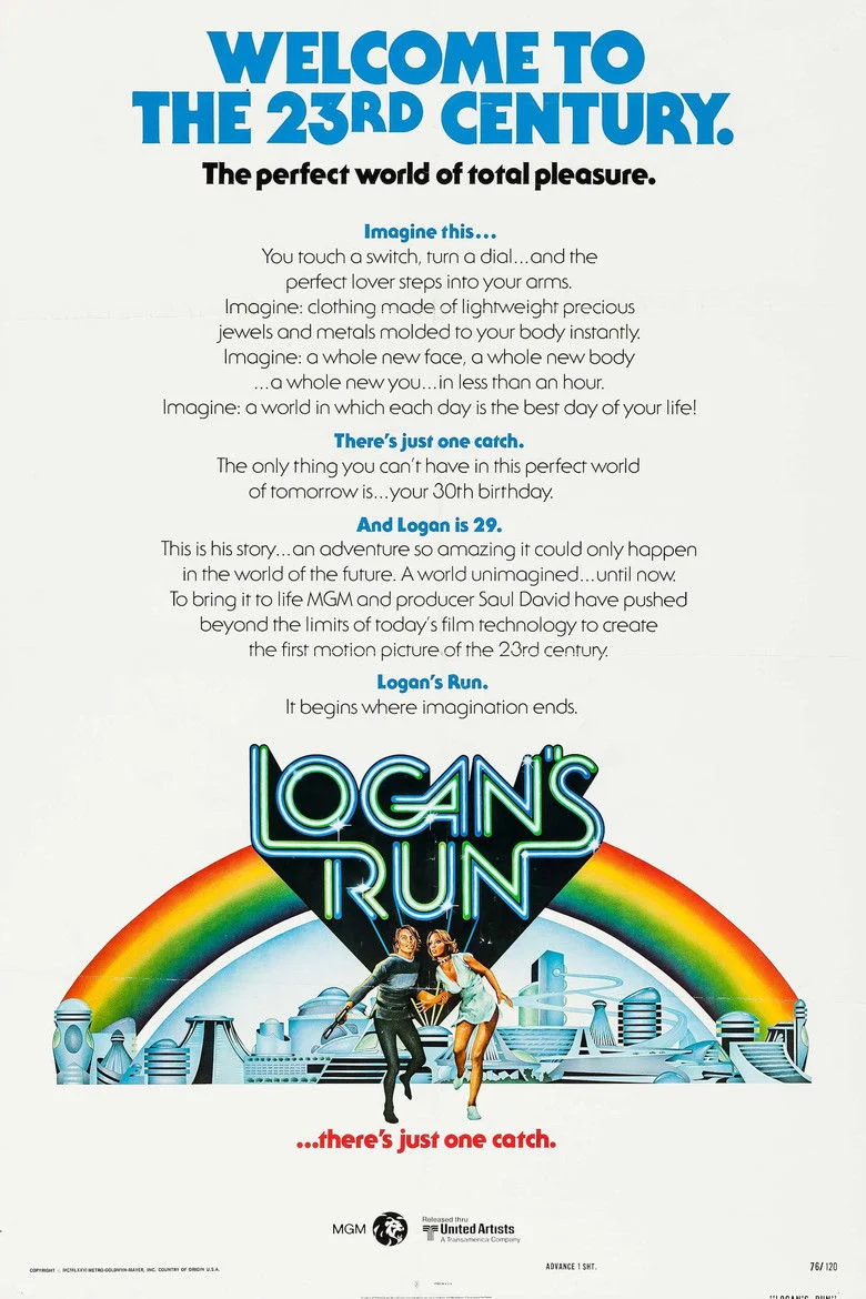 Sinopsis: La vida transcurre plácidamente en una megalópolis del siglo XXIII. Sus habitantes dedican la mayor parte del tiempo a gozar de los placeres de la vida y frecuentan tiendas en las que pueden cambiar de personalidad y aspecto físico, gracias a la cirugía plástica instantánea. Sin embargo, al cumplir los 30 años, deben morir. Logan, un policía encargado de cazar a los que huyen de la muerte, decide también rebelarse y huir hacia el desierto que rodea la ciudad.