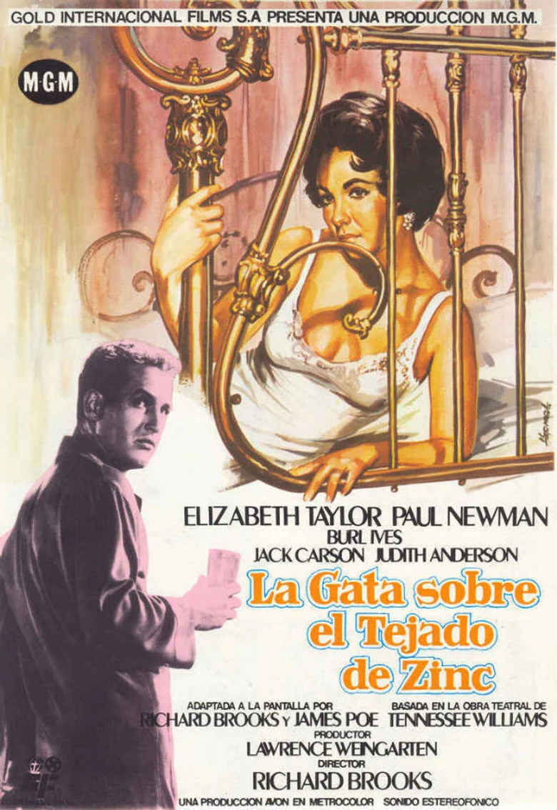 Sinopsis: La inminente muerte del anciano patriarca de una acomodada familia del Sur desencadena terribles tensiones entre sus herederos. Uno de sus hijos, Brick, indeciso y apático, se refugia en el alcohol y se muestra completamente indiferente ante la situación, pero Maggie, su mujer, no está dispuesta a contemplar impasible su destrucción. El otro, Gooper, al igual que su esposa, es ambicioso y oportunista.