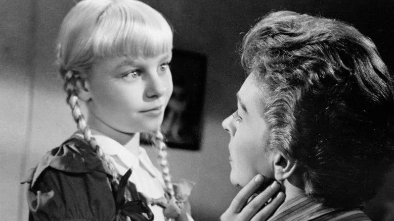 Sinopsis: Rhoda es una niña de ocho años, perversa, cínica y muy inteligente. Christine, su madre, que sospecha que ha asesinado a un compañero de colegio, acaba relacionando este hecho con otros trágicos accidentes y piensa que la niña puede ser responsable de todos.