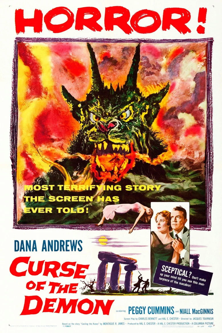 Sinopsis: El Profesor Henry Harrington (Maurice Denham), un investigador de sectas que venía denunciando las actividades demonológicas del Dr. Karswell, muere en un extraño accidente. El psicólogo norteamericano John Holden (Dana Andrews), que se encuentra de visita en Londres, es bastante escéptico respecto a cuestiones tales como la brujería y las sectas satánicas, a pesar de lo cual investigará el caso, con la colaboración de la sobrina del difunto.