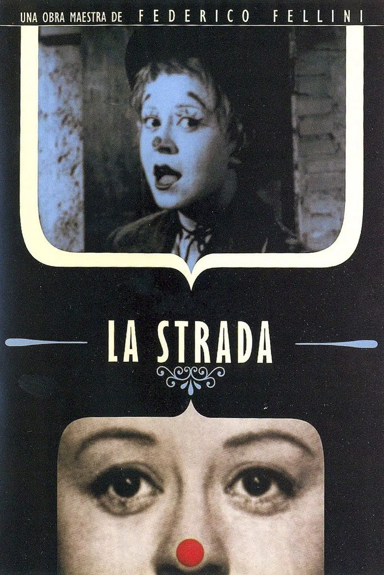 Sinopsis: Cuando Zampanó, un artista ambulante, enviuda, compra a Gelsomina, la hermana de su mujer, sin que la madre de la chica oponga la menor resistencia. Pese al carácter violento y agresivo de Zampanó, la muchacha se siente atraída por el estilo de vida nómada, siempre en la calle (la strada en italiano), sobre todo cuando su dueño la incluye en el espectáculo. Aunque varios de los pintorescos personajes que va conociendo en su deambular le proponen que se una a ellos, Gelsomina se mantendrá fiel a Zampanó hasta las últimas consecuencias.