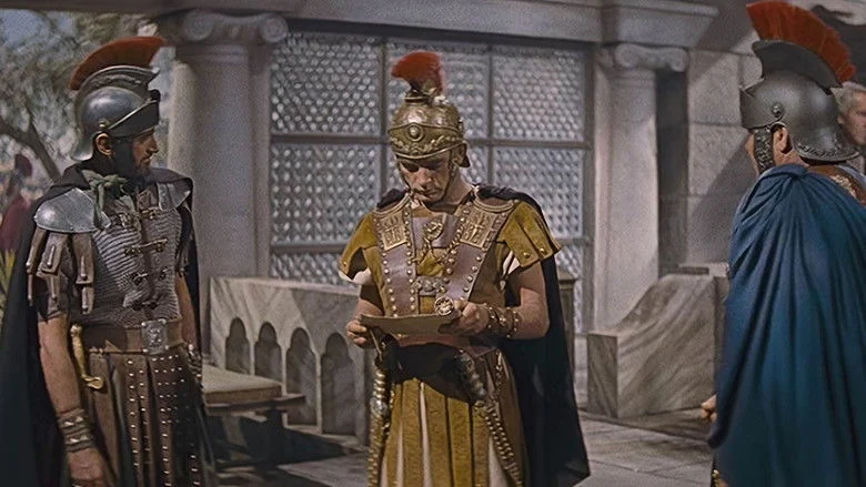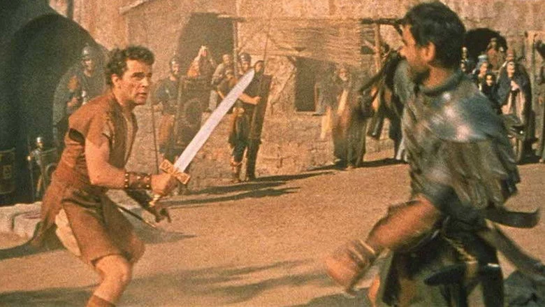 Sinopsis: Siglo I d.C. En la Roma de Tiberio, el joven y noble Marcelo Galio encuentra en una subasta de esclavos a la bella Diana, enamorada de él desde que eran niños, y ahora pupila del emperador. Marcelo se enfrenta en una violenta puja con Calígula, hijo y sucesor de Tiberio, y consigue quitarle al esclavo griego Demetrio. Enterado el emperador de la disputa, castiga a Marcelo enviándolo a Palestina en calidad de tribuno. Cuando llega, Poncio Pilato acaba de condenar a Cristo a morir en la cruz.
