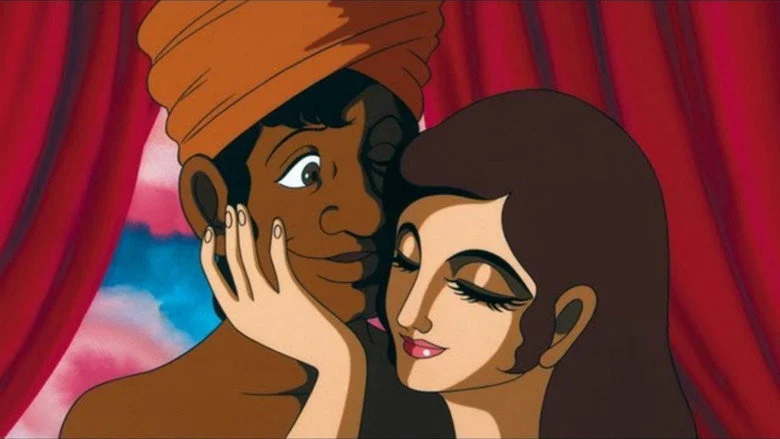 Sinopsis: Adaptación de "Las mil y una noches". La historia se centra en Aladino, quien ama y pierde a la hermosa esclava Miriam, y en sus aventuras cambiará de nombre, llamándose Simbad. Forma parte de la trilogía "Animerama", formada por "Las mil y una noches" (1969), "Cleopatra" (1970) y "Belladonna of Sadness" (1973). Ideada por Osamu Tezuka, padre del manga/anime, la trilogia se caracterizó por dos elementos: fueron pensadas para proyectarse en pantallas de cine -algo poco común para la época- y se trataba de animación para adultos, adelantándose a obras como "Fritz the Cat" de Ralph Bakshi.