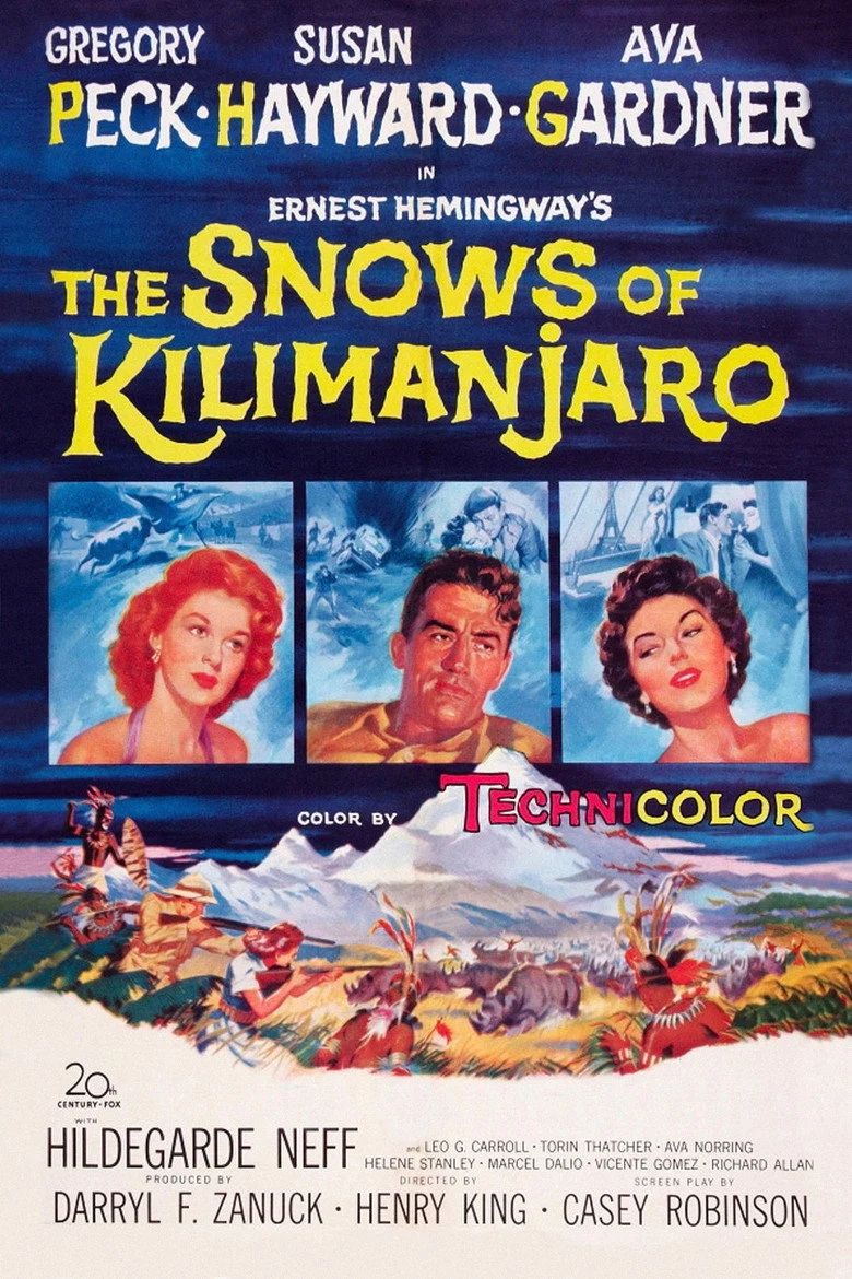 Sinopsis: Harry es un escritor que resulta herido en un accidente durante un safari cerca del Kilimanjaro. Mientras espera la llegada del equipo de rescate, hace un repaso de los momentos más importantes de su vida.