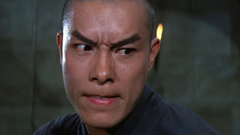 Sinopsis: Durante la invasión manchú a China, el general de la dinastía Ming es asesinado y su hijo se refugia en el templo Shaolin para aprender las artes marciales y vengar la muerte de su padre. Primero tendrá que sortear la rigurosa prueba de los legendarios "18 hombres de bronce".
