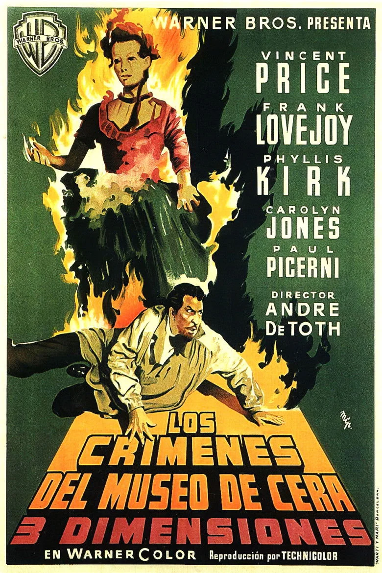 Sinopsis: El escultor de un museo de cera tiene una fuerte discusión con su socio, porque éste pretende incendiar el local para cobrar el seguro. Años después, mientras el profesor Jarrod intenta reconstruir el museo, se producen extrañas desapariciones.