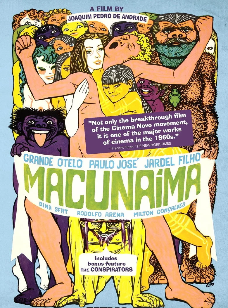 Sinopsis: El director logra una caricatura aguda de la condición humana y su satirización, provocando risas espontáneas cuándo se detiene en los absurdos del racismo, la personalidad de los indios y el modo en que las distintas clases sociales se devoran entre sí. La película se inspira en una famosa novela de Mario de Andrade, fundador del "Movimiento Literario Modernista" de los años 20 y narra la historia y la metamorfosis de Macunaíma, el héroe perezoso y sin ningún carácter, que nace negro en el interior de Brasil. Emigra con sus hermanos hacia la gran ciudad en busca de un amuleto de la suerte, y en el camino se vuelve blanco. En la ciudad entablará una relación con una guerrillera urbana y un magnate capitalista.