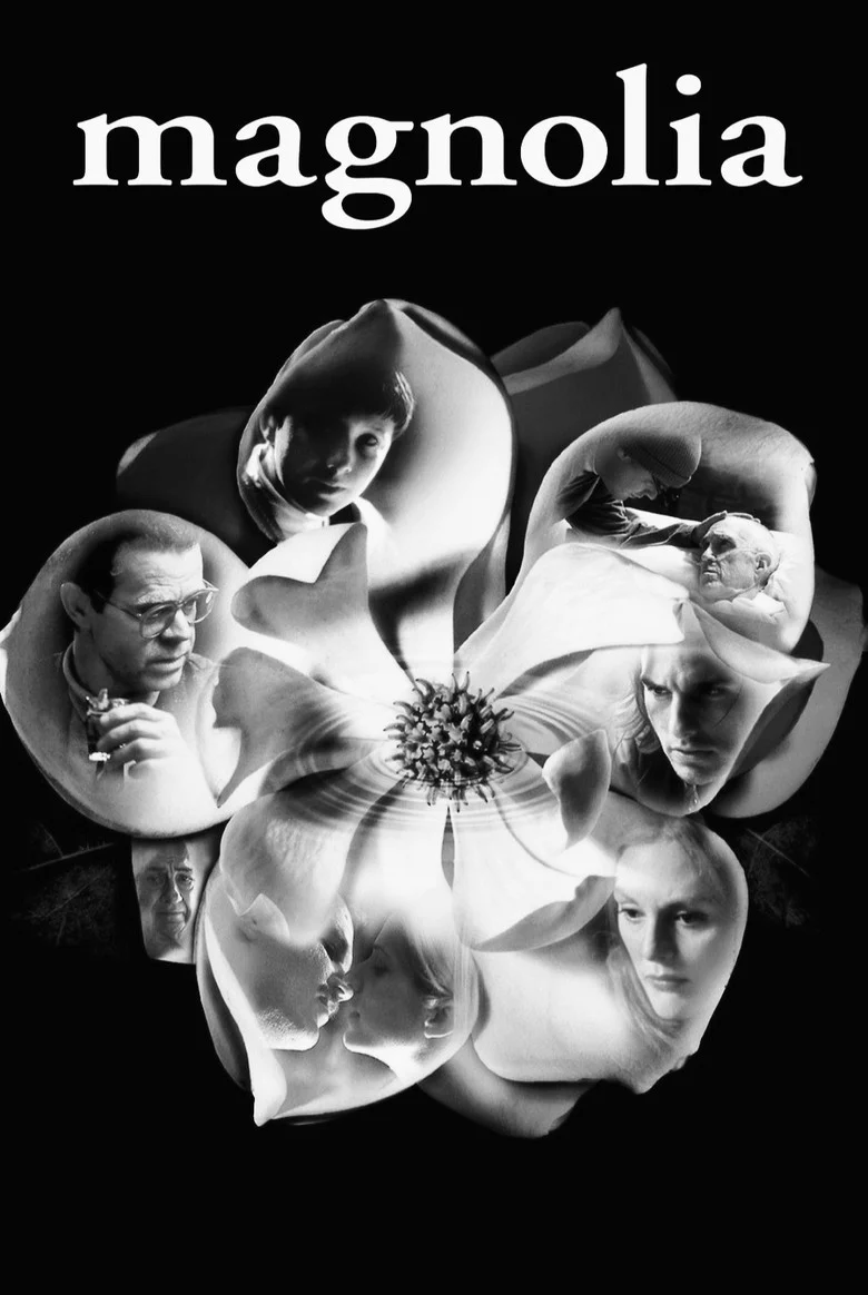 Sinopsis: La película consta de nueve tramas paralelas que tienen lugar en el Valle de San Fernando, en Los Angeles: un niño prodigio, el presentador de un concurso de televisión, un ex-niño prodigio, un moribundo, su hijo perdido, la mujer y el enfermero del moribundo. Son historias aparentemente independientes, pero que guardan entre sí una extraña relación. Magnolia es el retrato de la vida americana visto a través de una serie de viñetas cómicas y conmovedoras.