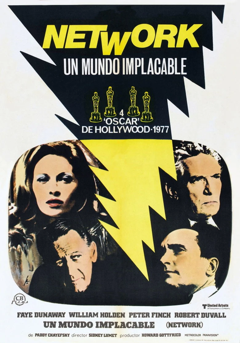 Sinopsis: Tras 25 años trabajando en una cadena, el veterano presentador Howard Beale debe abandonar su puesto por el bajo nivel de audiencia. Su jefe y mejor amigo, Max Schumacher, le da dos semanas para despedirse de los espectadores. Beale, viudo y alcohólico, queda trastocado y decide anunciar durante una emisión que se suicidará en su último programa ante las cámaras. El hecho sin precedentes provoca una gran expectación y los propios compañeros tratarán de convertir la destrucción de este hombre en un negocio rentable.