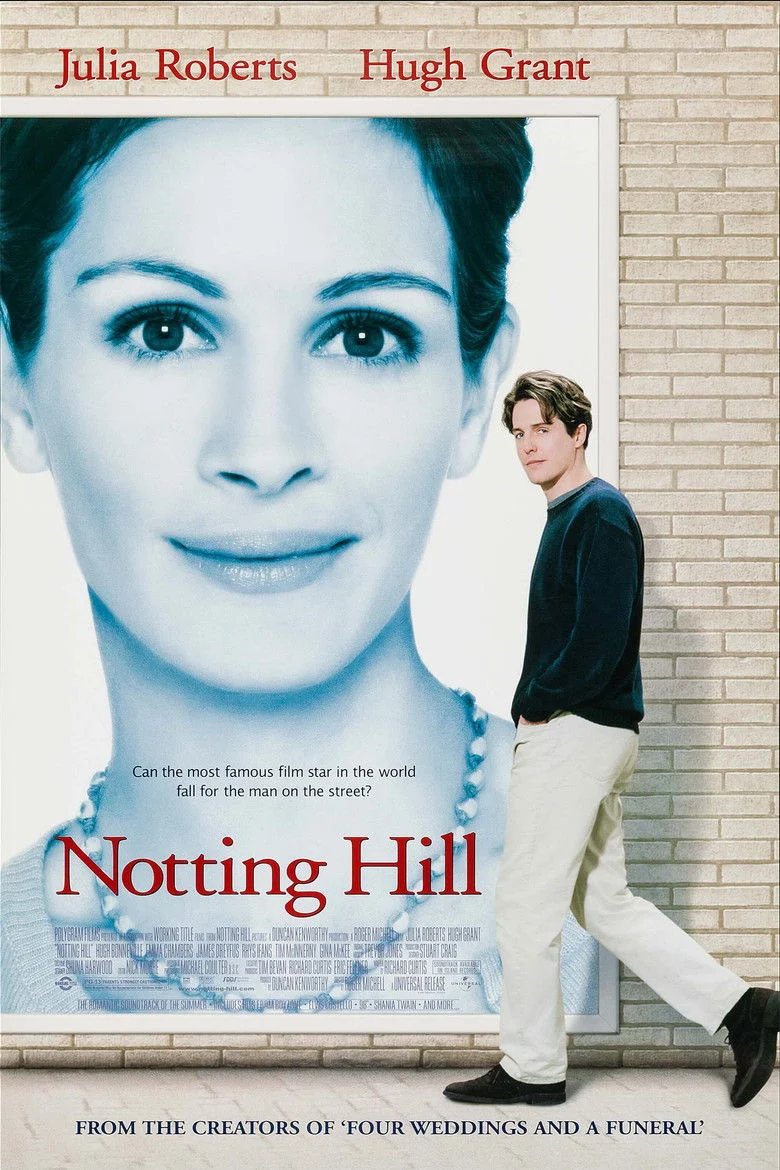Sinopsis: La historia se centra en William (Hugh Grant), propietario de una tienda de libros en el popular barrio londinense de Notting Hill, y Anna Scott (Julia Roberts), la estrella más rutilante del firmamento cinematográfico. Desde el momento en que la actriz entra en la tienda, William se embarca en un cortejo complicado, para el cual cuenta con la inestimable ayuda de sus inseparables amigos, entre los que destaca su compañero de piso el singular Spike (Rhys Ifans), que observa con asombro e incredulidad cómo el bueno de William tiene un romance con una mujer inalcanzable para cualquier otro ser humano.