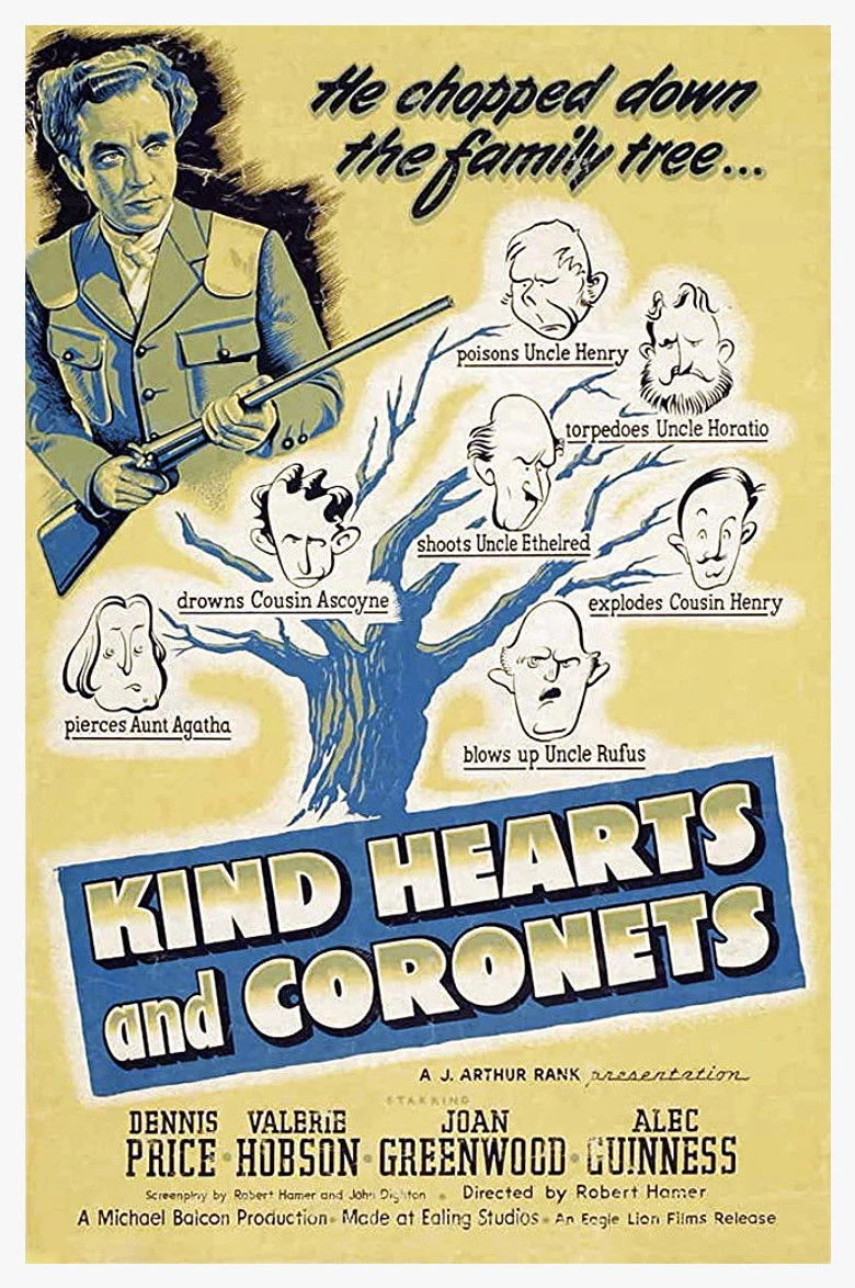 Sinopsis: Un joven ambicioso y sin escrúpulos (Dennis Price) proyecta vengar la afrenta que la aristocrática familia D'Ascoyne, a la cual pertenece, les ha infligido a él y a su madre. El plan consiste en eliminar a todos los miembros de la familia que le preceden en la sucesión al título de Duque.