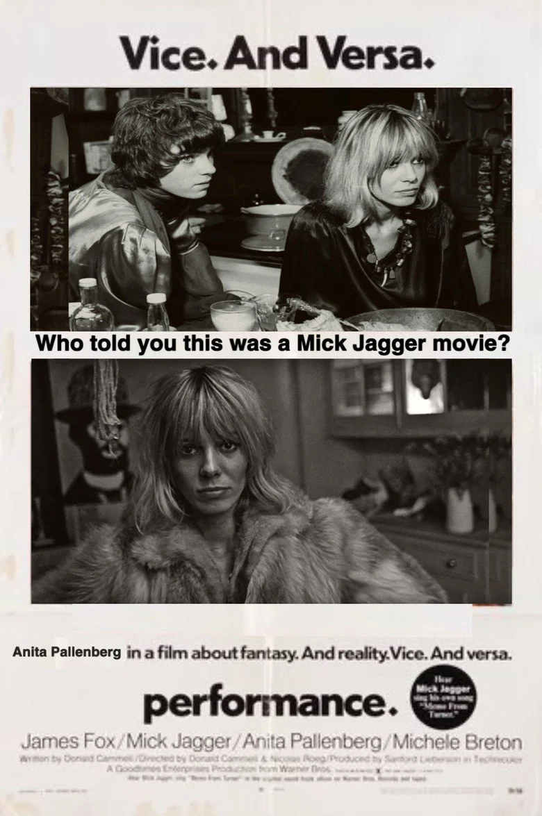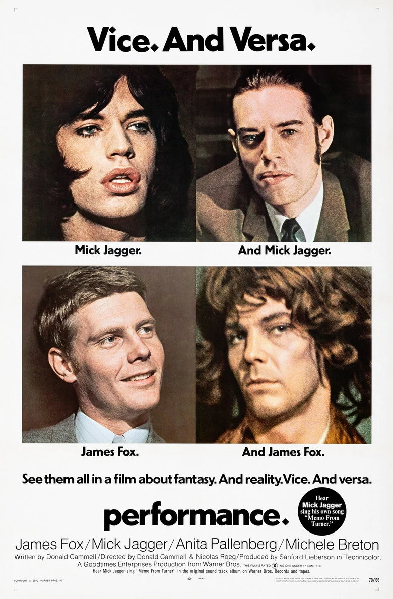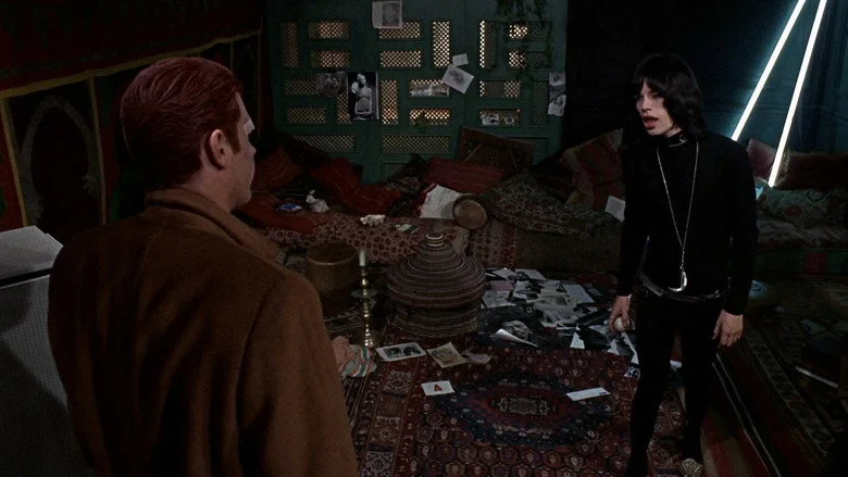 Sinopsis: Debut de Roeg en un thriller ambientado en el mundo de la música pop. Chas es un performer de la mafia, un matón a sueldo que aplica curiosas y artísticas torturas a sus víctimas. Cuando surge un problema con su capo, se ve obligado a huir, y decide esconderse en el sótano de una antigua casa de un suburbio de Londres. El casero, una ex estrella de rock llamada Turner (interpretado por Mick Jagger), vive con dos mujeres con las que forma un trío, y se pasa el día comiendo setas alucinógenas e improvisando con la guitarra. Al principio, Chas y Turner chocan, pero poco a poco, en un viaje de conocimiento mutuo, se darán cuenta de que ambos son performers y que tan sólo una delgada línea les separa.