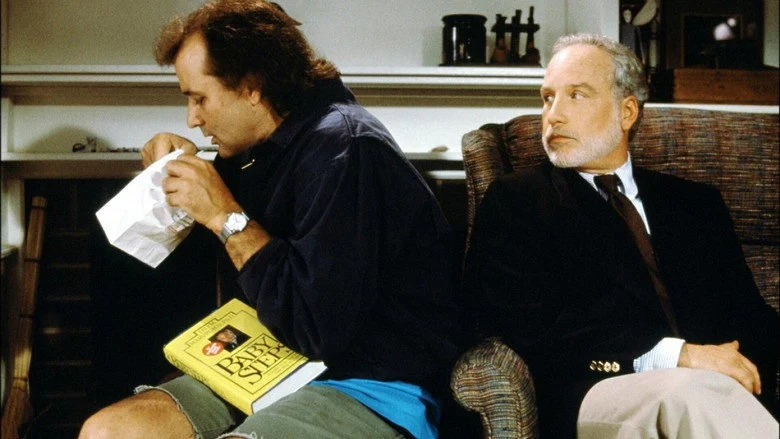 Sinopsis: Bob Wiley (Bill Murray), un neurótico lleno de manías y fobias, frecuenta la consulta del psiquiatra Leo Marvin (Richard Dreyfuss). Harto de sus problemas, el médico se marcha de vacaciones con su familia a su chalet de verano a orillas de un lago. Pero, de manera inesperada, Bob se presenta allí. La situación llega a ser tan desesperante que Leo, completamente desquiciado, trama un plan para deshacerse de él.
