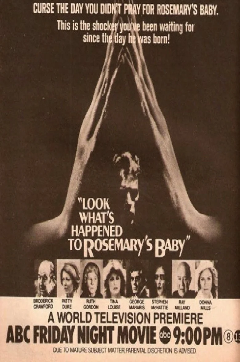 Sinopsis: Secuela televisiva de "Rosemary's Baby" rodada por el montador de la película de Polansky. Rosemary Woodhouse traiciona a la secta satánica "La Tribu" y secuestra a su hijo Adrian, que está destinado a convertirse en el Anticristo. La Tribu se pone entonces en contacto con Guy Woodhouse (ex-marido de Rosemary) para tenderle a la madre una trampa que les permita recuperar al niño. Pero hay un factor con el que la Tribu no cuenta: durante años, Rosemary ha estado educando a su hijo en el bien para contrarrestar la maléfica influencia de la secta.